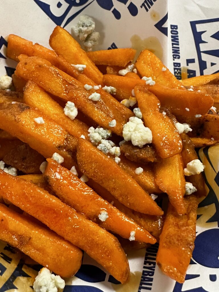 Crispy french fries tossed in medium buffalo sauce and crumbled bleu cheese