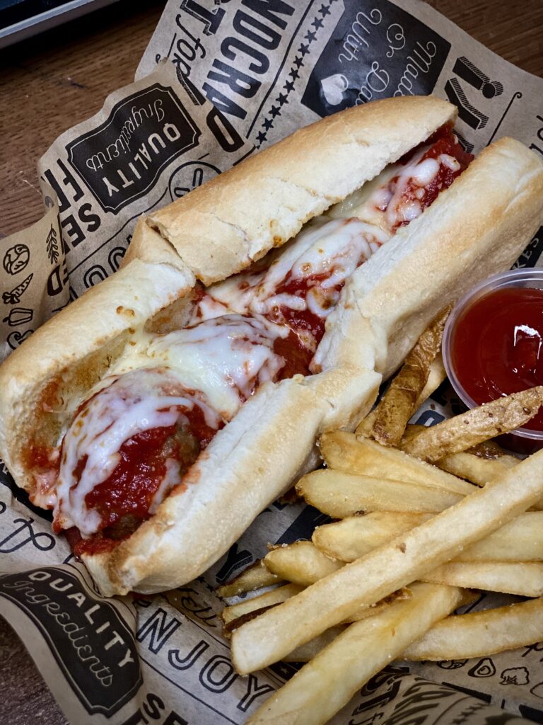 Chefs’ homemade meatballs simmered in our flavorful marinara sauce and topped with tons of mozzarella cheese on a garlic bread roll