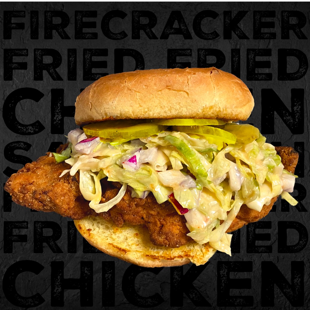 Sink your teeth into our mouthwatering Firecracker Fried Chicken Sandwich! Featuring a juicy, hand-breaded chicken breast fried to golden perfection, it’s generously smothered in our signature firecracker “slaw”—a zesty mix of crisp lettuce, ripe tomatoes, and crunchy onions tossed in our creamy, tangy Firecracker Sauce. Topped with crisp dill pickles and served on a toasted buttery brioche bun–it’s a strike of flavor you won’t want to miss!